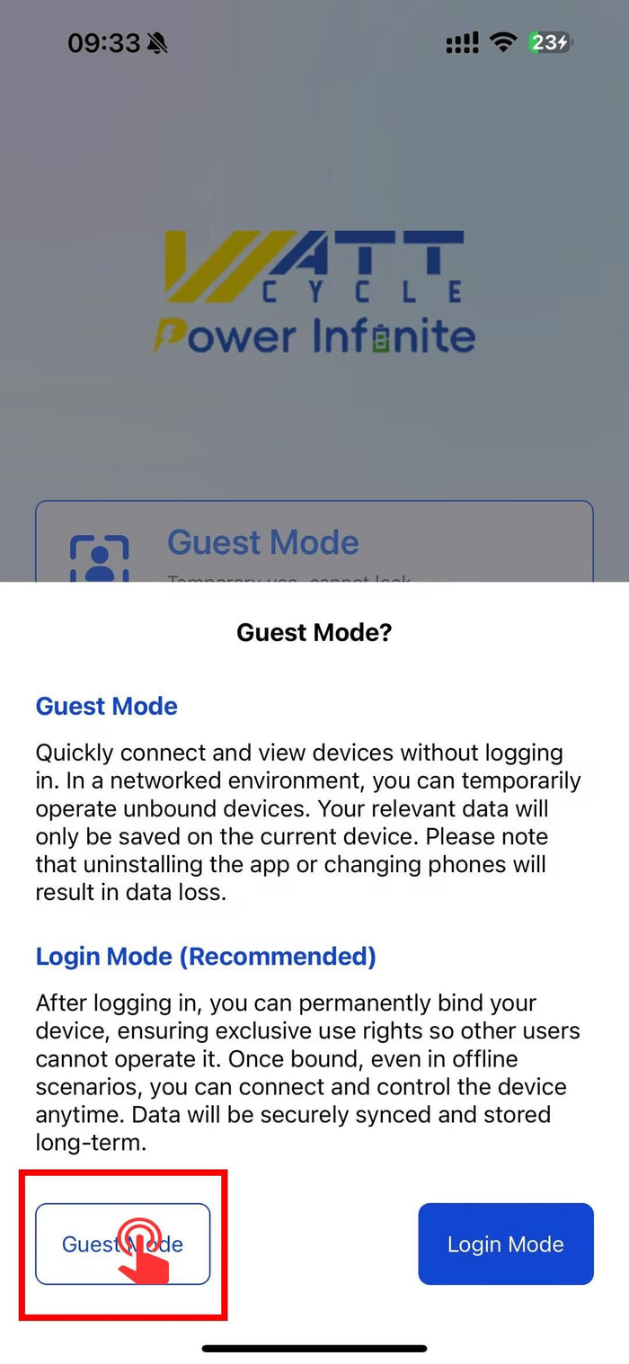 to download and install the WattCycle App. Or you can click the following logo link to access the WattCycle App directly.