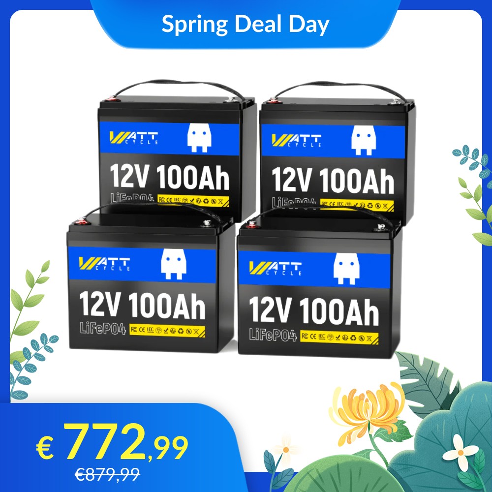 【🌸 Offre de printemps】Batterie WattCycle 12V 100Ah à décharge profonde LiFePO4