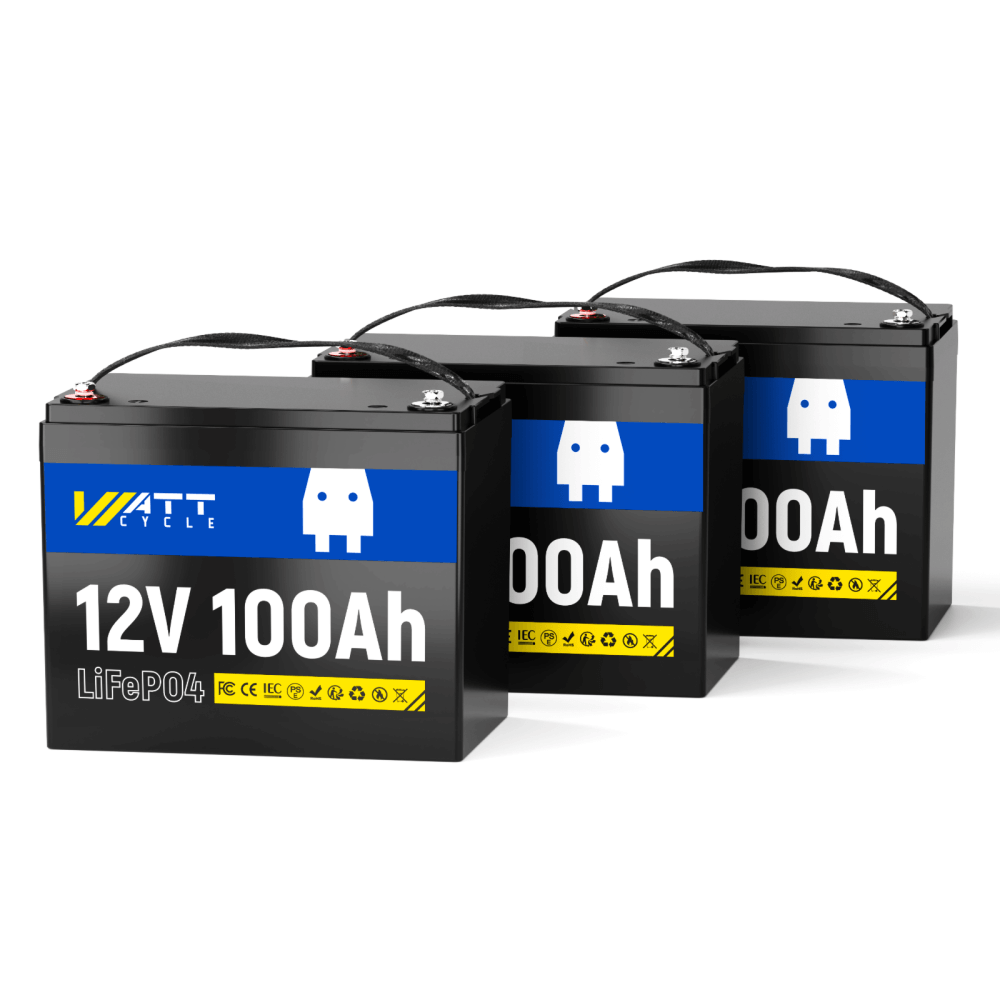 3 pcs WattCycle 12V 100Ah Deep Cycle LiFePO4 Batteries