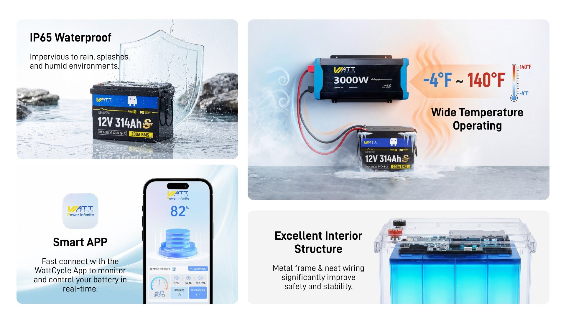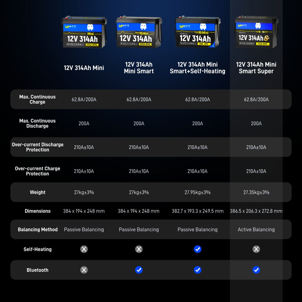 【⚡ Pre-sale】WattCycle 12V 314Ah Mini Super LiFePO4 Battery with Bluetooth & Active Balance