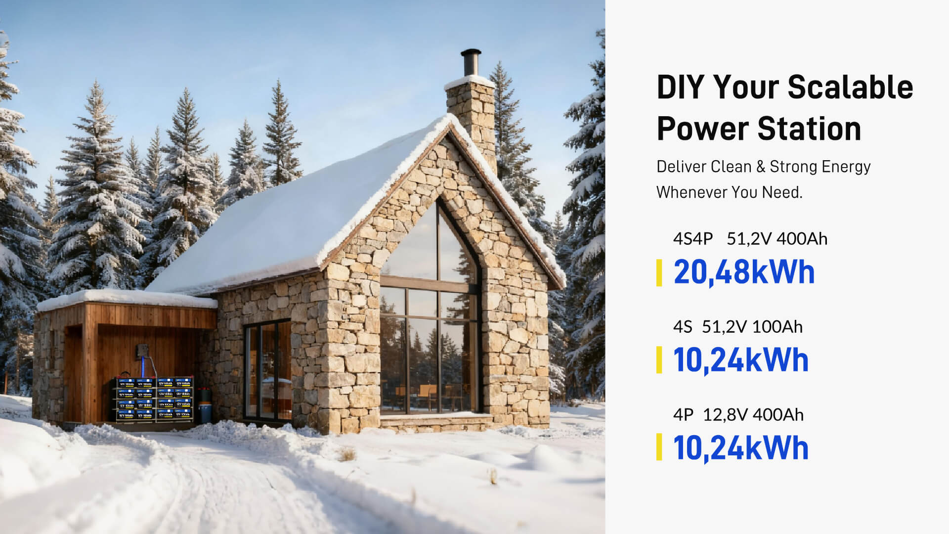 ✔ Expansion: Support 4P4S Connection to 20.48kWh Energy